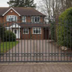 The owners of a grand manor house require an imposing, elegant entrance. They opt for a classic wrought iron double swing gate with intricate scrollwork and a custom-forged crest. This bespoke gate provides superior security while perfectly matching the historic architecture, creating a majestic first impression.
