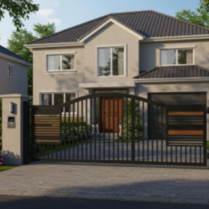 A family in a new development wants a sleek and secure entrance. They choose a black, powder-coated steel sliding gate. Its clean lines complement their home's contemporary design, and its automation system is controlled via a smartphone app, providing both security and convenience.
